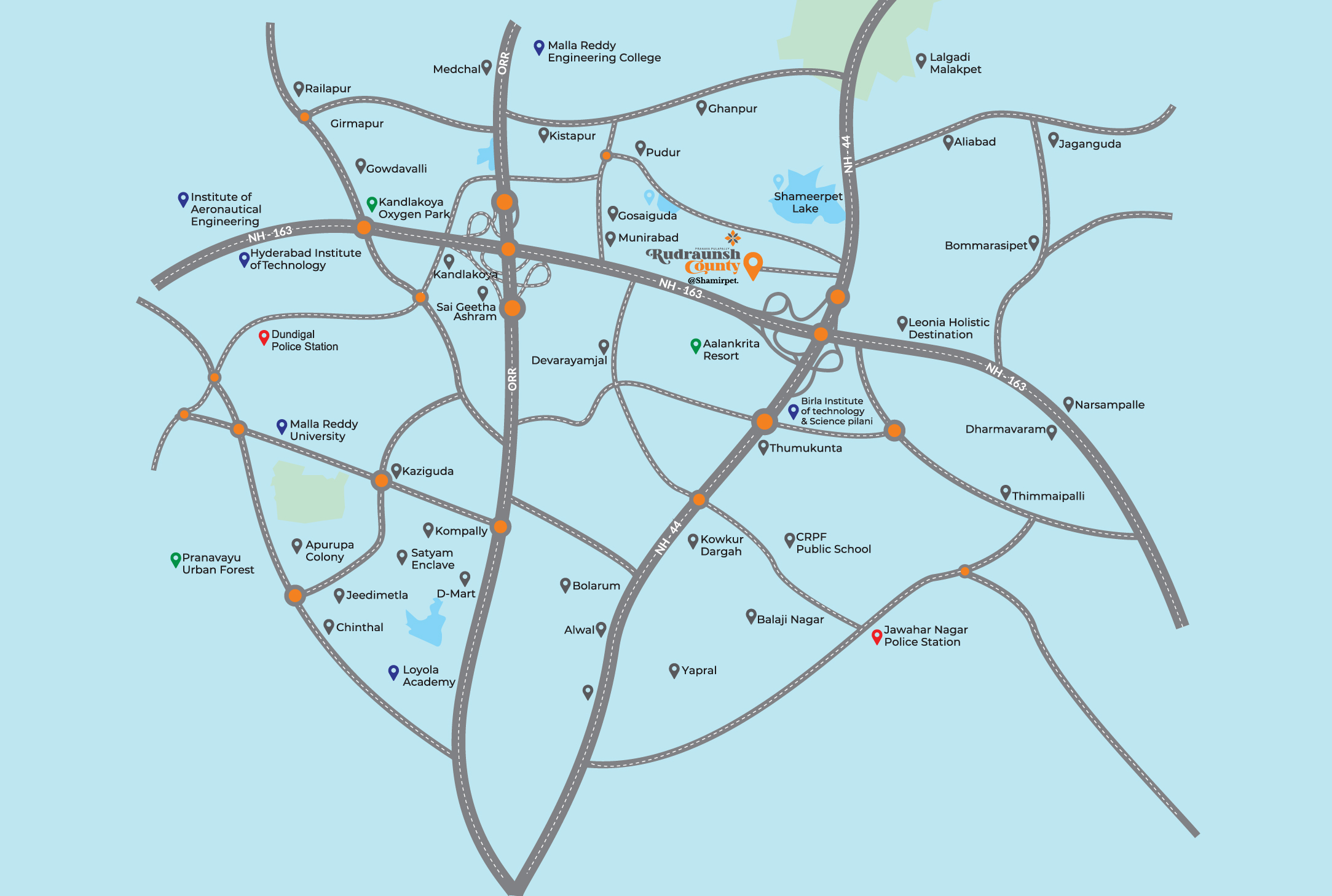 With a walking distance to Shamirpet lake and a stone's throw away from various industries and projects, Rudraunsh presents an opportunity to build your dream villa in the lap of nature.